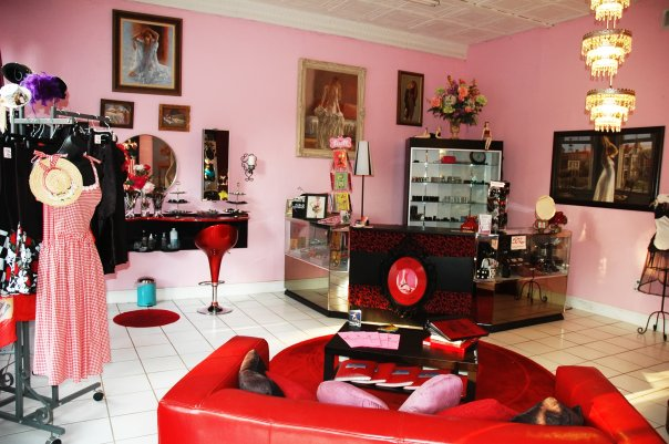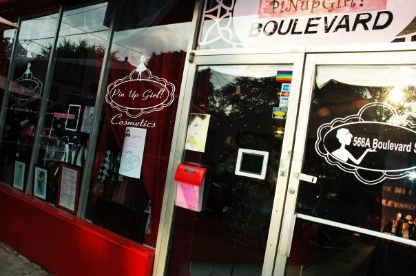Yesterday Erin and I met up with Kellyn, owner of Pin Up Girl! Cosmetics in Atlanta. Currently, Knot Couture has 11 various accessories for sale in the store, with more items to come soon! We will be discussing to possibility of having our wedding dress samples as well as casual wear for sale in the future. Pin Up Girl! specializes in doing retro-themed makeup applications and hair dressing as well as taking portraits of their clients in a fun, vintage-inspired atmosphere. All the girls there are really sweet, and if you are ever in
