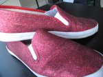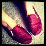 I made myself a pair of ruby slippers, because let’s face it, sometimes a girl needs to play dress up. I have been wanting a pair for a while, but couldn’t find them ANYWHERE. So, (of course) I decided to make them myself. They started as basic red slip-on skimmers I purchased at Urban Outfitters. Any shoes would do, really. They don’t even have to be red! During snowpocalypse Atlanta 2010, Erin got a hankering to do something creative, so she decided to glitz up some high heels for Knot Couture. There is a DIY tutorial on how to make your own on our blog!