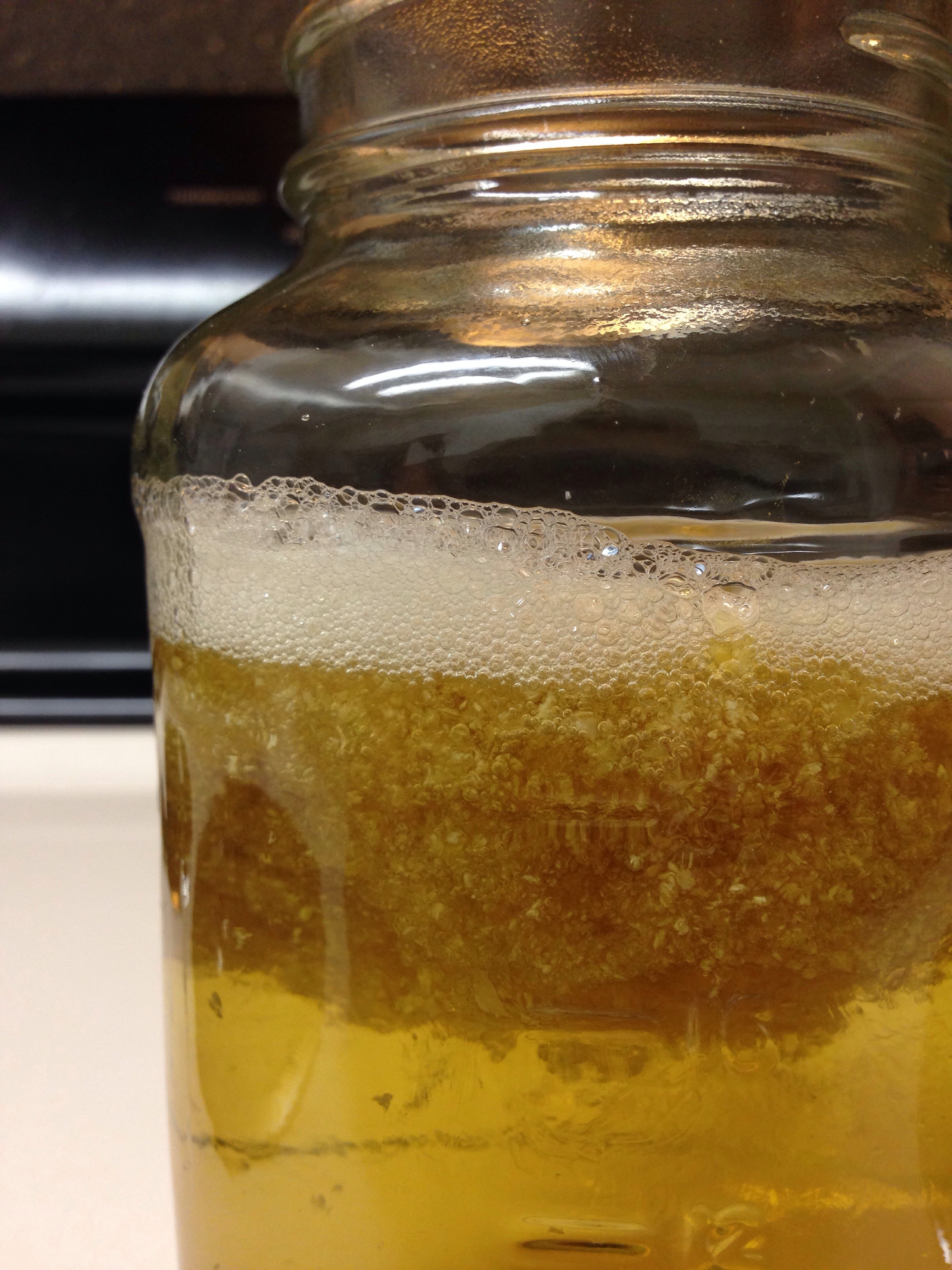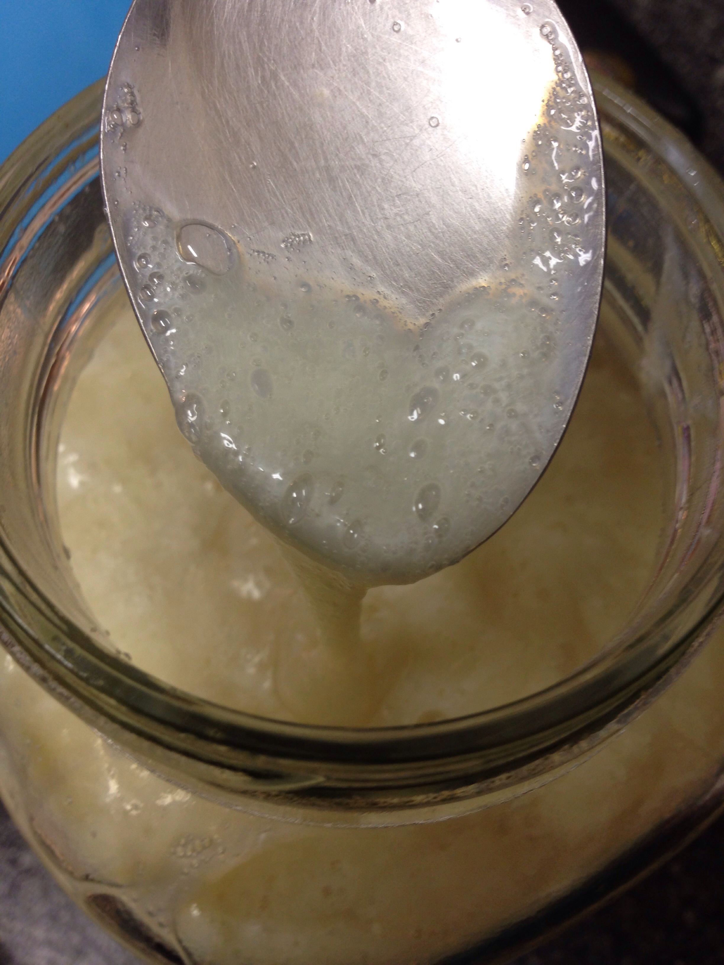 I made sure to shake the jar throughout the next day to whip up the mixture so it wouldn’t solidify any more. The mixture is slimy, but once diluted for making my toxic-free products, I’m sure it will be fine. I plan on adding lemon, orange and grapefruit seed essential oils for cleaning, and peppermint and vanilla for shampoo.