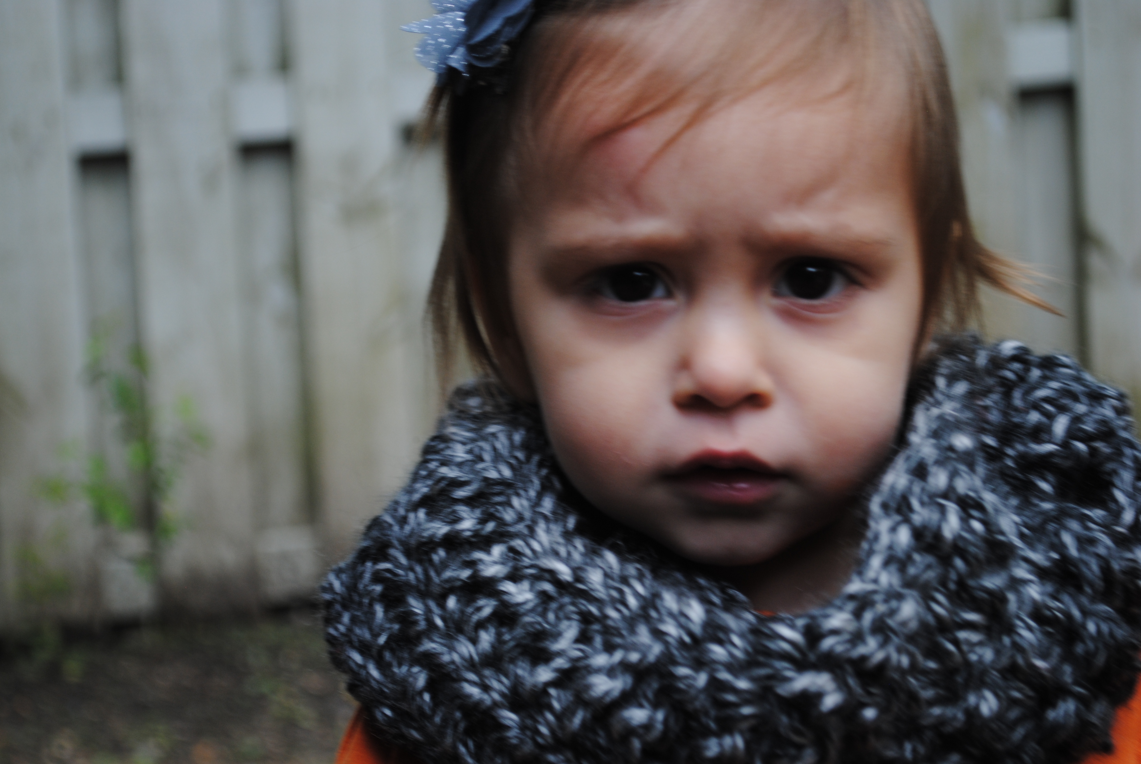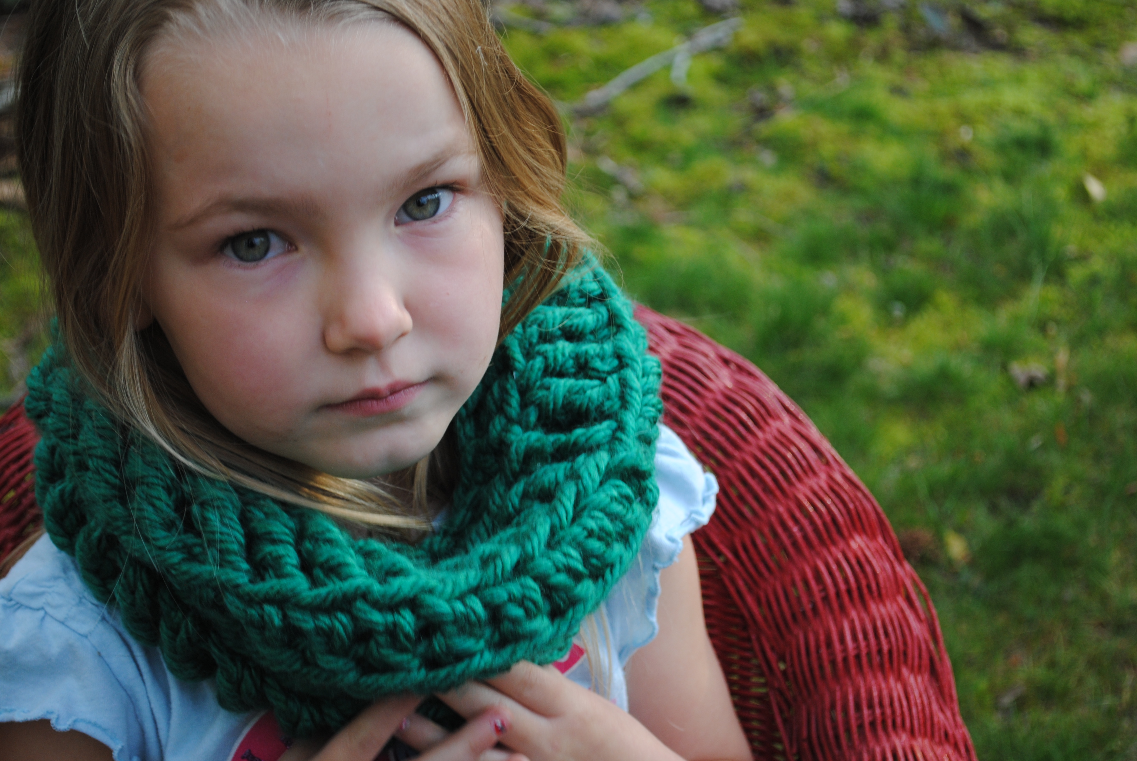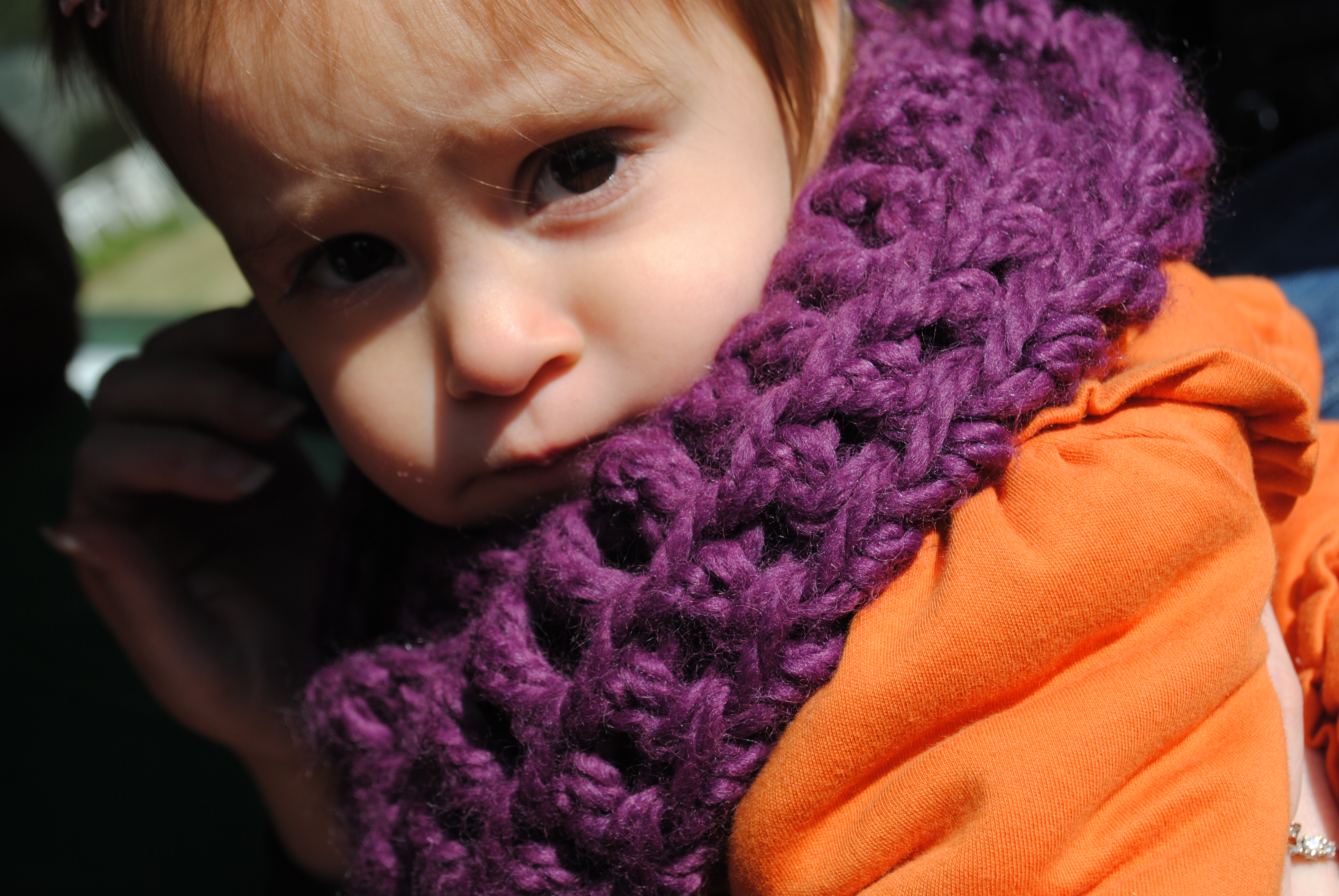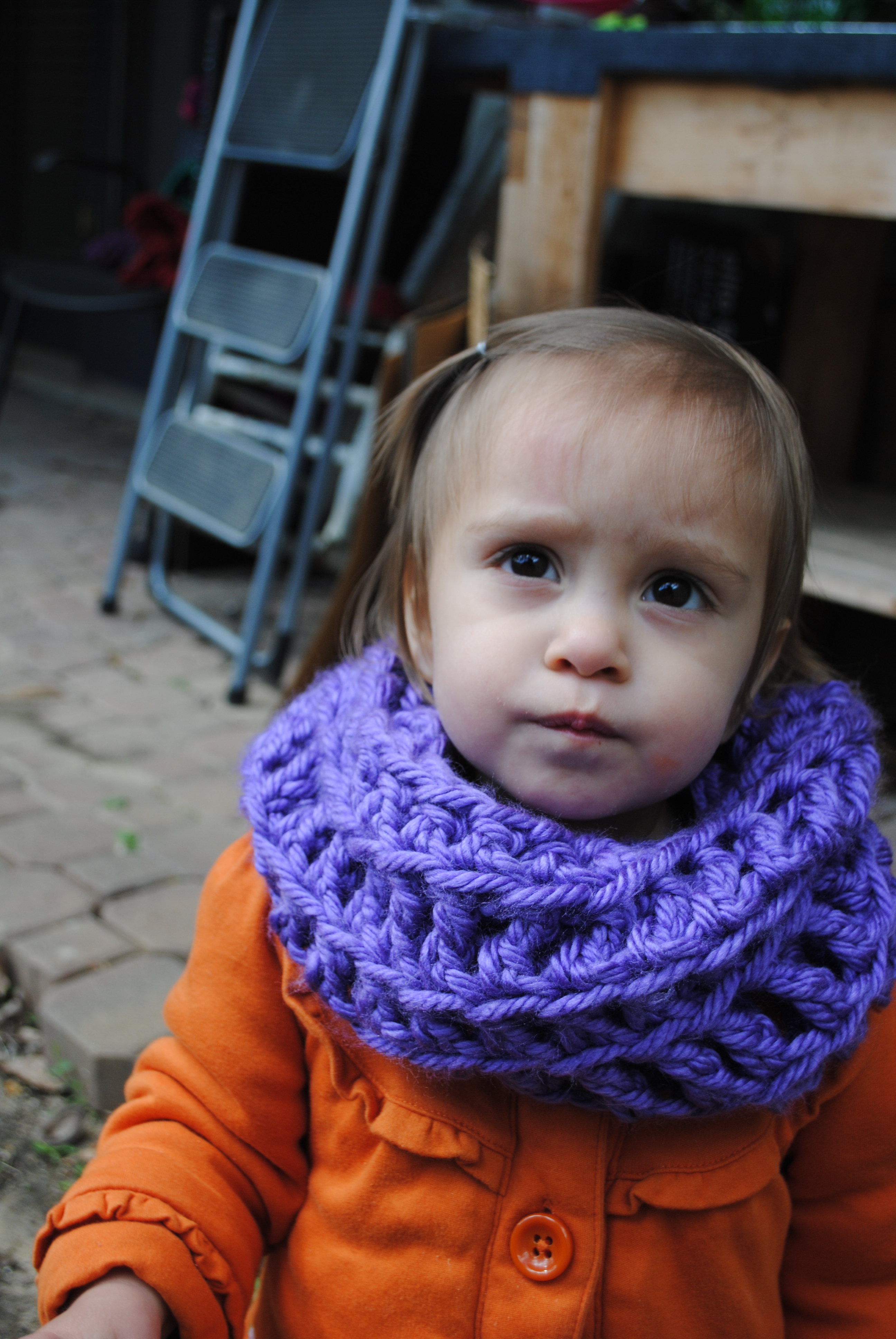 Last winter, Shorts got a child sized scarf from her grandmother, which unfortunately, we lost in a tragic dryer accident. We don’t talk about it, much. Anyway, I decided to try to make her one, and I scoured pinterest for some ideas. I found this super awesome DIY tutorial from Carissa Miss and decided I had to take on this simple, 1 hour project that only required one ball (yes-ONE) of chunky yarn. I have a compulsive craft hording problem, and tend to buy single balls of yarn because of said problem. This seemed like the perfect solution, plus- what a great stress reliever. I love feeling like I’m creating something, like I’m not just sitting around and wasting time. Ever since trying her tutorial, I was addicted. For those of you DIYer’s out there, check out Carissa’s tutorial.