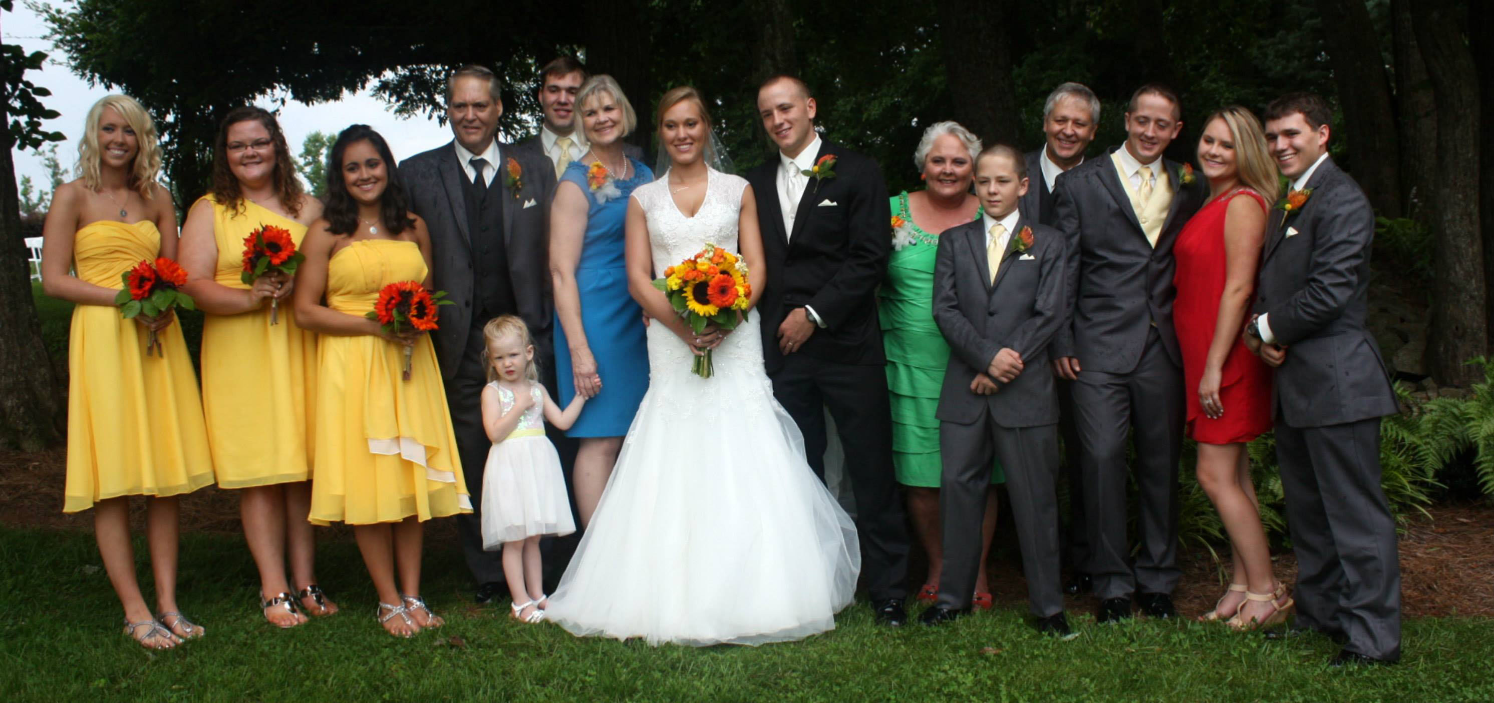 Last year I was given a referral last year for a last-minute wedding. The bride went to Davids Bridal, and they wanted to charge her a LOT for having to rush the bridesmaids dresses. I made them replicas out of yellow chiffon and satin for a fraction of the cost. I didn’t get around to posting them until now. The three bridesmaids chose their own style from their catalog, as you can see at the bottom of the post. I replicated them in a sunny yellow chiffon, and a pop of white for the maid of honor. What a great color for a summer wedding!